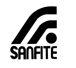 - DM0000: The mark consists of two parallel running bands or lines which angle upward and curve over a sphere with the word "Sanfite" below it.