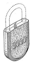 - DM0000: THE MARK CONSISTS OF A STIPPLED SURFACE AND A U-SHAPED LINED BORDER ON THE BODY OF THE PADLOCK AND THE POSITION OF THE FOUR DIALS ON THE FRONT OF THE PADLOCK.