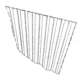 - DM0000: The drawing is an enlarged generally front perspective view of the subject surface texture, at an angle looking downward on the front upper right hand corner of an exemplary envelope incorporating such surface texture. Stippling therein is intended to be representative of various alternating raised and lowered surface areas, and of curvatures there between, which form the repeating ribbed surface texture of the otherwise generally flatpack envelope container. The dotted lines are intended to generally represent envelope portions in cutaway, representing different sizes of various envelopes to which the subject surface texture may be applied.