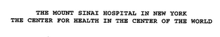THE MOUNT SINAI HOSPITAL IN NEW YORK THE CENTER FOR HEALTH IN THE CENTER OF THE WORLD