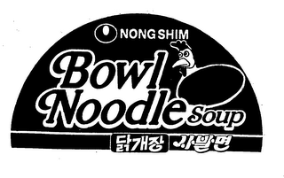 TR0010: The wording "NONG SHIM" can be translated into the English language as "agricultural essence". The non-Latin (Korean) letters in the mark transliterate to dakgejang sablamyun and this translates as "bowl noodle chicken flavor".