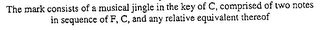 - DM0000: The mark consists of a musical jingle in the key of C, comprised of two notes in sequence of F, C, and any relative equivalent thereof.