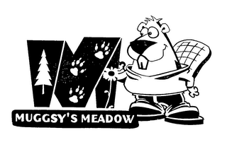 - DM0000: The mark consists of the letter M above the words "MUGGSY'S MEADOW". The left side of the letter M has a tree, the middle of the letter M has three paw prints, and the right side of the M has a flower. A beaver stands next to the letter M.
