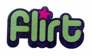 - DM0000: The mark consists of the stylized word "Flirt" and a star design that dots the letter "i". The color green appears in the wording "Flirt", the color purple appears in the star design, and the color Black appears in the outline of the wording "Flirt" and the star design.