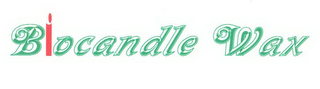 - DM0000: The mark consists of the words, BIOCANDLE WAX, with the "i" appearing as the design of a candle. The color red appears on the design of a candle; the colors green and white appear on the remaining elements of the mark.