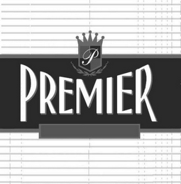 - DM0000: THE MARK CONSISTS OF THE WORD "PREMIER" WITHIN A LARGE RECTANGULAR FIGURE WITH BORDERS ON THE TOP AND BOTTOM OF THE RECTANGLE, A SMALLER RECTANGULAR FIGURE OVERLAPPING THE LOWER PART OF THE LARGE RECTANGLE, AND A SHIELD AND WREATH DESIGN OVERLAPPING THE UPPER PART OF THE LARGE RECTANGLE, WITH THE SHIELD CONTAINING A STYLIZED LETTER "P" AND A CHECK DESIGN AND HAVING A CROWN DESIGN FORMING THE UPPER PART OF THE SHIELD.