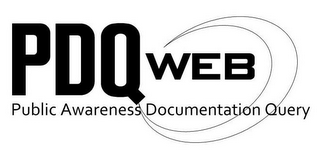 DM0000: The mark consists of the words "PUBLIC AWARENESS DOCUMENTATION QUERY" below the term "PDQWEB" with the words "web" and"documentation" partly encircled by an asymetrical circle.