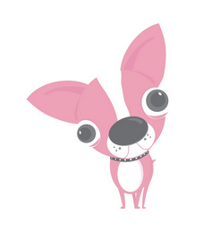 - DM0000: The mark consists of a cartoon dog with a pink body. A white stripe appears through the forehead and there is a white spot on the belly. The facial features consist of two eyes, which are light gray in the iris, dark gray in the pupils and on white eyeballs, with a dark gray nose with light gray highlights. The color white appears around the mouth, which is outlined in pink and had dark gray freckles. The collar is dark gray with white studs.