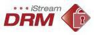 - DM0000: The mark consists of the wording, "iStream" preceded by three ellipses over the wording, "DRM" and a design element comprised of a stylized diamond badge design with a portion of a stylized padlock design inside the diamond. The color dark red appears in the wording, "DRM" and in the diamond badge; the color light red appears in the ellipses and in the padlock design; the color gray appears in the wording "iStream" and in the shadow of the diamond badge design; and the color white appears in the padlock design.