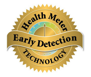 DM0000: The mark consists of a seal; in the outside circle within the seal are the words "Health Meter" on the top and "Technology" on the bottom; across the center of the seal there is a curved banner with the words "Early Detection;" in the middle circle there are smaller circles placed at regular intervals around the circle; and in the middle of the circle emanating from the banner is an pointer.
