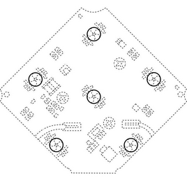 - DM0000: The mark consists of an arrangement of six light emitting diodes (LED's) with one LED located in the center of a pentagonal pattern as applied to a circuit board sold as an integral component of a vehicle light. Additional structure is shown in broken lines to give context, but does not form any part of the mark.