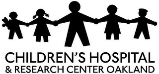 DM0000: The mark consists of a silhouette of children holding hands; the child on the far left is also holding a stuffed animal and the child on the far right is wearing a hat. The words "CHILDREN'S HOSPITAL & RESEARCH CENTER OAKLAND" appear under the design element of the mark.