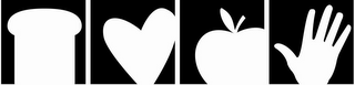 - DM0000: The mark consists of four generally dark shaded backgrounds with each including either a contrasting bread, heart, apple or hand shape.