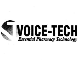 DM0000: The mark consists of the words "VOICE-TECH" appearing to the right of a circle shaded darkest at the upper left and becoming gradually lighter toward the lower left. A design suggestive of overlapping letters "V" and "T" appear as an unshaded area within the circular design. The words "ESSENTIAL PHARMACY TECHNOLOGY" in italicized script appear below the words "VOICE-TECH".