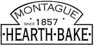 DM0000: The mark consists of the word "Montague" forming an upper arch, the smaller words "since 1857" appearing under the arch, and the larger words "Hearth Bake" appearing at the bottom; all words are surrounded by a border.