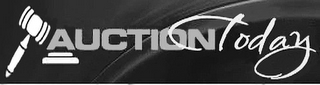 - DM0000: The mark consists of a gavel beside the term "AUCTIONTODAY" and sound block under the letter "A". The word "AUCTION" is in a block font and the word "TODAY" is in a script font, all on a shaded rectangular background.