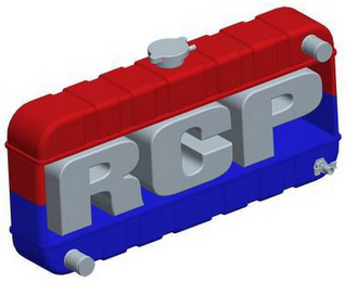 - DM0000: The mark consists of a stylized depiction of a radiator, with the lettering "RCP" set in the middle of the radiator. The color grey appears in the lettering "RCP", in the radiator cap on the top of the radiator, in the bolts at the upper-right and lower-left corners of the radiator, and in the drain plug at the lower-right corner of the radiator; the color red appears in the shading in the top half of the radiator; the color blue appears in the shading in the bottom half of the radiator.