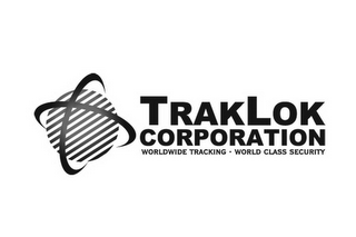 DM0000: The mark consists of the stacked words "TRAKLOK CORPORATION" and "Worldwide Tracking . World Class Security" on three lines. To the left of the text is a design of a circle consisting of alternating lines with two curved lines criss-crossed over the circle.