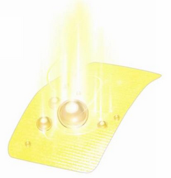 - DM0000: The mark consists of a rectangular design of a bandage incorporating some striping. Seven circular designs are depicted on the surface of the bandage design. A series of lines representing relief emanate upward from the face of the bandage. The design of the bandage, the circular designs and some of the relief lines are yellow. The center of the circular designs, some striping on the bandage design and the majority of the relief lines are white.