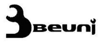 - DM0000: The mark consists of two vertically aligned conjoined arches, stylized and displayed sideways and resembling a wrench, followed by the letters "BEUNI" with a wrench design replacing the dot over the letter "I".