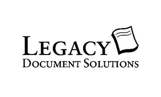 DM0000: The mark consists of the word "Legacy" in large bold letters. To the right of the word "Legacy" is a wavy image of a document with drop shadow and two simulated lines of text. Underneath the above are the words "Document Solutions" in non bold letters and about half the font size.