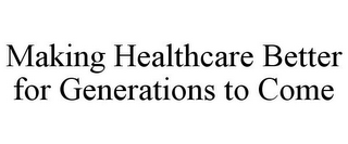 MAKING HEALTHCARE BETTER FOR GENERATIONS TO COME