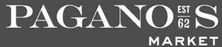 - DM0000: The mark consists of the words "PAGANO EST 62 S MARKET". The "EST 62" is in place of the apostrophe in the word "PAGANO'S".