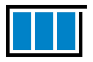 - DM0000: The mark consists of three vertical blue bars inside a black outline of a rectangle with an opening in the upper right corner and a white border in between the elements.