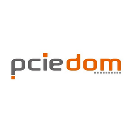 - DM0000: The mark consists of the word "pciedom" in lowercase stylized font, with the letters "pcie" in gray (including an orange dot below the "p" and an orange dot dotting the "i") and the letters "dom" in orange (with a short string of gray dots underlining from the end of the letter "o" to the end of the letter "m").