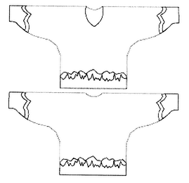 - DM0000: The mark consist of the mountain representation as applied to the bottom or waist portion of the garment and to the cuff portion of the sleeves of the garment. The dotted lines are not part of the mark and are use to indicate position of the mark.