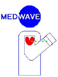 - DM0000: The mark consists of a blue stylized profile of a person with the letters MED near the head and WAVE within the circle that simulates a head.