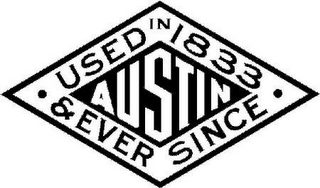 DM0000: The mark consists of two concentric diamonds, with the word "AUSTIN" within the central diamond and the words "USED IN 1833 & EVER SINCE" in the space between the two diamonds.
