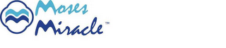 - DM0000: The mark consists of The words "Moses" in Teal, the word "Miracle" inn dark blue, both in script font on the left of a dark blue cloud-like shape with a dark blue and a teal m-shaped wave in the cloud-like shape.
