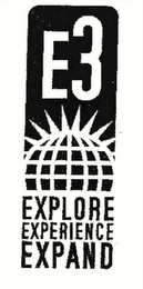 DM0000: The mark consists of a letter E and number 3 above a globe design and the words EXPLORE EXPERIENCE EXPAND below the globe design.