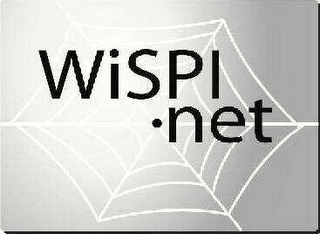 - CD0000: The mark consists of a white spider web appearing against a gray rectangular carrier that fades out on the left side of the design, with the wording WISPI.NET in black lettering written across the spider web.