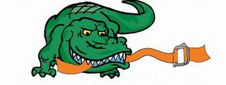 - CD0000: The color green appears in the alligator's body; the color orange appears in the strap; the color gray appears in the strap buckle; the color blue appears in the alligator's mouth; the color white appears in the alligator's teeth; and the color black appears in the outline of the design.