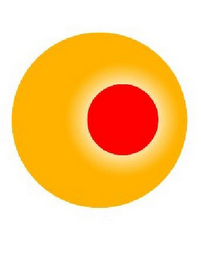 - DM0000: The mark consists of a small red circle with a white corona fading to yellow situated to the right of center inside of a larger yellow circle.