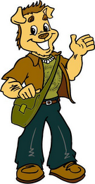 - DM0000: The mark consists of the color brown appearing on a dog standing upright smiling and waving it's hand. The colors white and black appear on the dog's eyes and the color white appears on its mouth. The dog is wearing a green shirt, brown jacket, blue pants, brown shoes, brown belt and white chain, and is carrying a green book bag slung across the chest. The color black is used throughout the mark to outline shapes and images.
