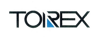 - DM0000: The mark consists of the color blue appearing in the triangle and the color black appearing in the word "TOREX".