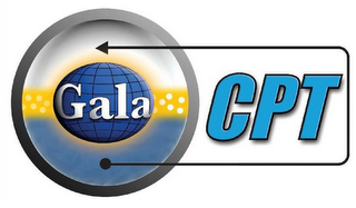 - DM0000: The mark consists of the color blue appearing in the design of the globe and the lower half of a circle design and the letters "CPT"; the color black appears in the design of the globe, the letters "CPT" and the design of the arrow; the color yellow appears in the design of the circle; the color white appears in the term "GALA" and the design of the circle; and the color gray appears in the design of the circle.