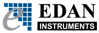 - DM0000: The mark consists of the color blue appears in the squares within the mark. The color black appears in the word "EDAN" and in the rectangle which forms the background of the word "INSTRUMENTS". The color white appears within the word "INSTRUMENTS". The color gray appears within the letter "e".