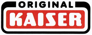 - DM0000: The mark consists of a partial generally rectangular outline appearing in black with the word "ORIGINAL" appearing in black on the top portion; the word "KAISER" appearing in white is superimposed on a red generally rectangular background which appears within the partial generally rectangular outline; the remaining white represents transparent areas and is not part of the mark.
