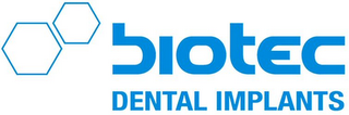 - DM0000: The mark consists of the wording BIOTEC in blue above the wording DENTAL IMPLANTS in blue with two hexagons to the left of the wording BIOTEC. The larger hexagon is further to the left and the slightly smaller hexagon is on the right next to the B in BIOTEC and slightly raised. The outline of the hexagons is blue. The color white in the background represents transparency and is not claimed as a feature of the mark.