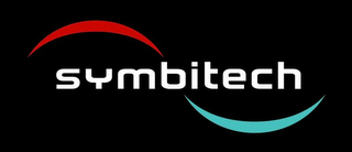 - DM0000: The mark consists of the white stylized word "SYMBITECH", located in between a red curved band and a turquoise curved band, all of which is enclosed in a black rectangle.