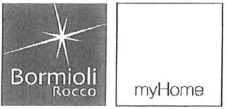 - DM0000: The mark consists of two square boxes, one containing the stylized wording "BORMIOLI ROCCO" under a star design on the left, and the other containing the stylized wording "myHome" on the right.