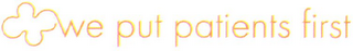 - DM0000: The mark consists of an outline of a stylized flower followed by the stylized wording "we put patients first". The entire mark is in orange with yellow shadowing.