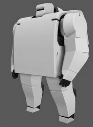 - DM0000: The mark consists of a robot with a big square chest and a very small head. The robot's arms are very long and its hands are very small. The robot has two legs. The grey background is not part of the mark.