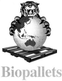 - DM0000: The mark consists of the design of a tiger head and claws, with the claws surrounding a global map of the world. The globe is resting on a pallet. The wording "BIOPALLETS" appears underneath the pallet design.
