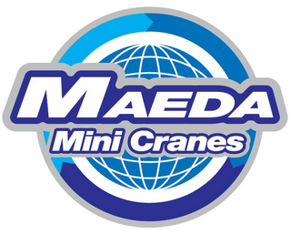 - CD0000: The mark consists of the words "MAEDA" and "Mini Cranes" positioned over an image of a globe; the image of globe is blue with thin white latitude and longitude lines and encircled by white, shaped-blue and silver rings; the words "MAEDA" and "Mini Cranes" are in white and surrounded with dark blue and silver rims.