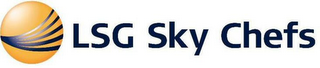 - DM0000: The mark consists of the wording "LSG SKY CHEFS" in blue to the right of a yellow circle containing five blue curved bars. There is white shadowing within the top portion of the circle and within the top two curved bars.